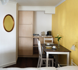 Doppelbett, Esstisch mit 2 Stühlen, Flachbildschirm TV, gratis WLAN, Kühlschrank mit Minibar, privater Zugang zum Zimmer.